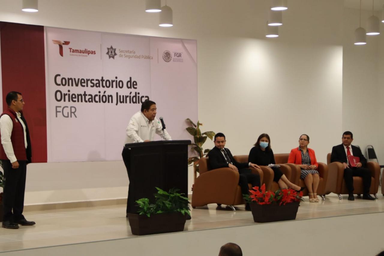 Este evento tuvo como sede el Auditorio de la Universidad de Seguridad y Justicia de Tamaulipas (USJT) y fue inaugurado por el secretario de Seguridad Pública de Tamaulipas, Sergio Hernando Chávez García, quien agradeció al representante de la FGR la disposición y el esfuerzo para llevar a cabo este conversatorio.