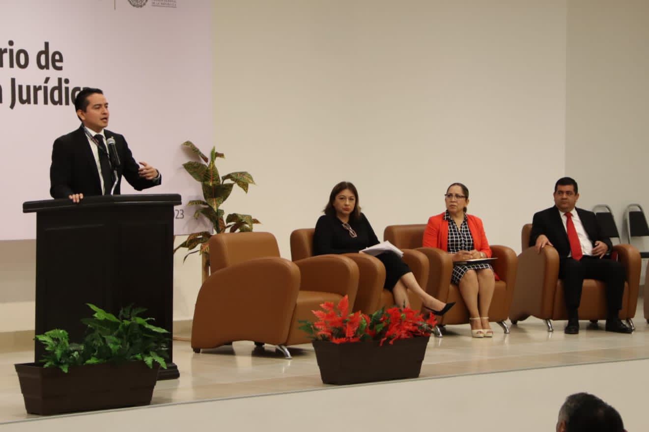 El conversatorio contó con la presencia de Carolina González Maldonado, coordinadora general Jurídica y de Acceso a la Información Pública de la SSPT; Herlinda Molina Estrada, directora de lo Contencioso de la Coordinación Jurídica de la SSPT y Juan Carlos Soto García, director jurídico de la USJT.