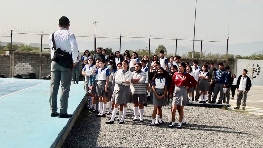 Ciudad Victoria, Tamaulipas. - Un segundo bloque de estudiantes de nivel medio superior, próximos a egresar visitaron las instalaciones de la Universidad de Seguridad y Justicia de Tamaulipas para conocer las carreras y las prácticas que se realizan para preparar mejores profesionistas.