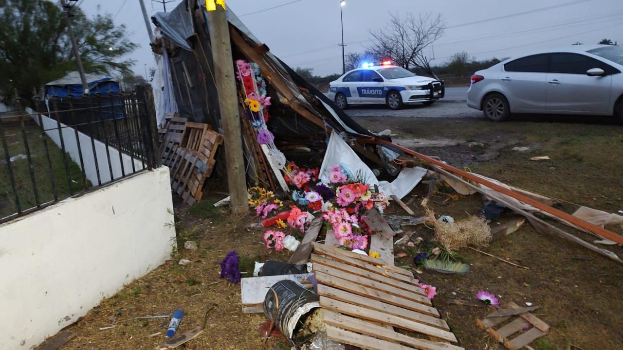 Metros antes de llegar al acceso al panteón particular Parque del Reencuentro la conductora del automóvil compacto perdió el control del volante y después de abandonar la superficie de rodamiento vehicular se estrelló contra un negocio de venta de flores destrozándolo por completo.