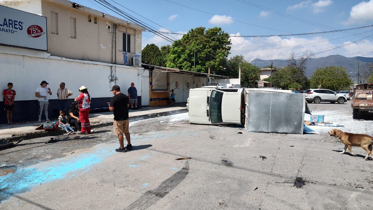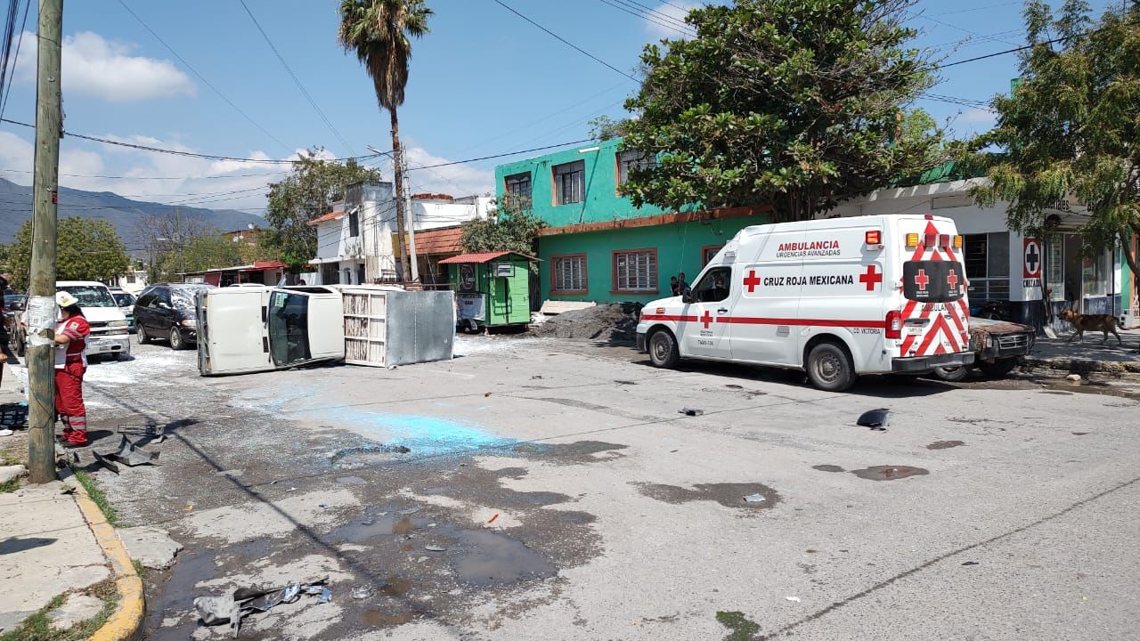 La camioneta Kia se impactó contra la camioneta cargada con el material para impermeabilizar y esta quedó fuera de control por lo que terminó volcada sobre su costado izquierdo.