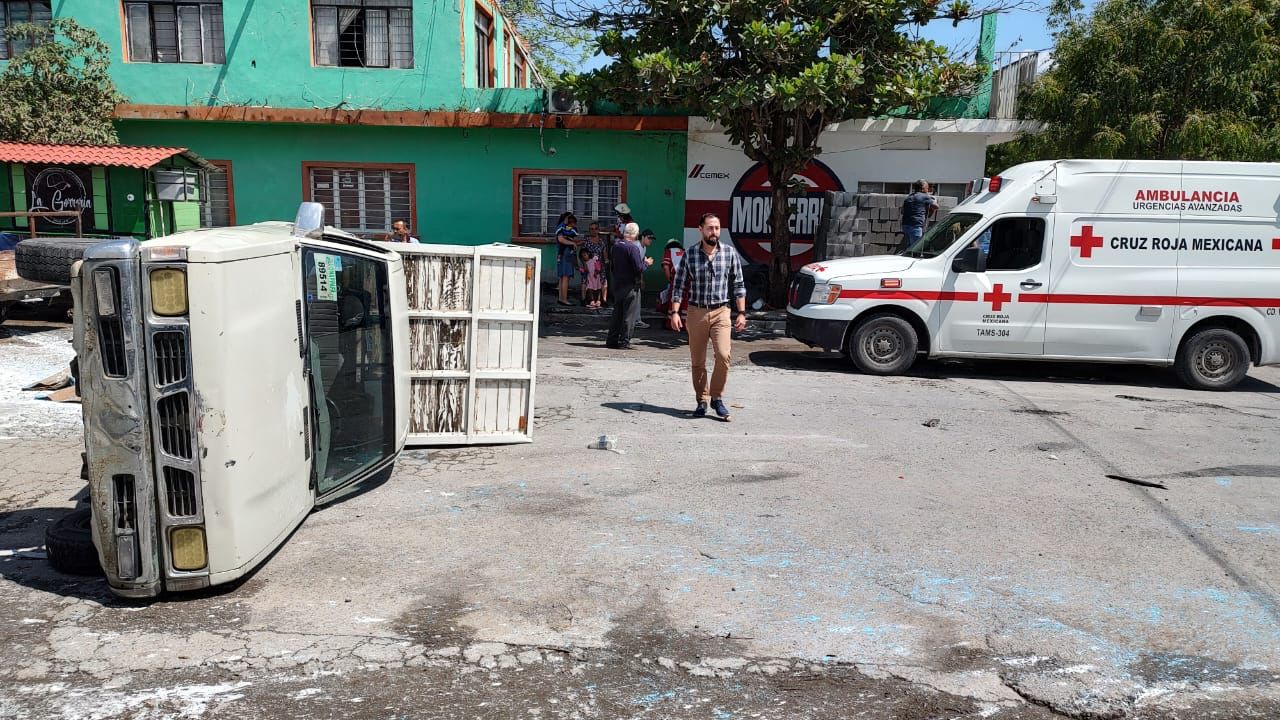 Al llegar al crucero con la Calle Zacatecas una camioneta de carga tipo caja cerrada tripulada por un joven que transportaba material para impermeabilizar intenta dar vuelta hacia el poniente pero omitió el alto correspondiente a consecuencia presuntamente de una falla en los frenos.