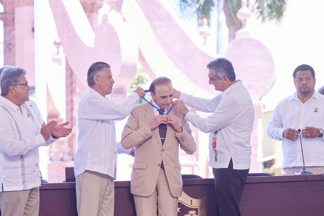 "Señor licenciado Carlos Dorantes del Rosal, le felicito sinceramente por la distinción que el Ayuntamiento de Tampico le entrega en esta fecha tan significativa por su obra de vida y me sumo a ese reconocimiento por su valiosa contribución a Tamaulipas", mencionó.