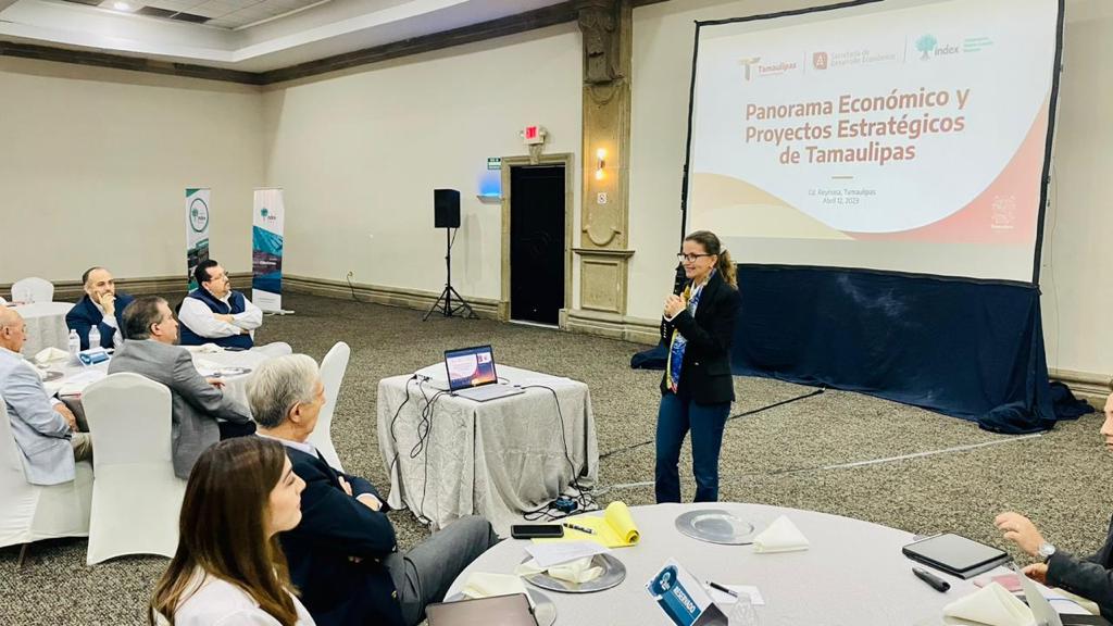 Reynosa, Tamaulipas.- La secretaria de Desarrollo Económico Ninfa Cantú Deándar sostuvo un encuentro con directivos de la Industria Maquiladora de Exportación de INDEX Reynosa, con el objetivo de estrechar la vinculación y el diálogo directo para hacer equipo e impulsar el crecimiento de este sector estratégico para la economía de Tamaulipas.