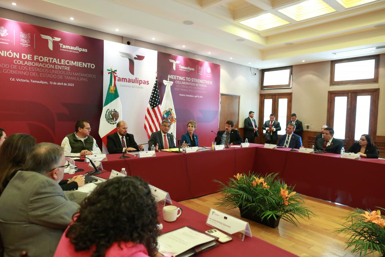 Ciudad Victoria, Tamaulipas.- Frenar el tráfico de armas en la frontera entre México y Estados Unidos, es un tema que se debe atender de inmediato para disminuir la capacidad de respuesta de las organizaciones delictivas, planteó el gobernador Américo Villarreal Anaya ante la Cónsul General de Estados Unidos en Matamoros, Yolanda A. Parra.