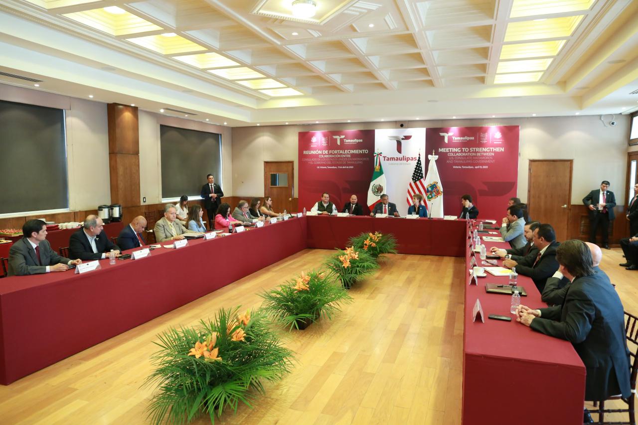En la reunión, el secretario de Seguridad en Tamaulipas, Sergio Chávez García relató que esta misma semana, personal militar aseguró armamento de grueso calibre en las márgenes del Río Bravo, que está comprobado que no se fabrican en nuestro país, por lo que respaldó la petición del gobernador, para incorporar en la agenda binacional, la necesidad de impedir el tráfico de armamento y municiones.