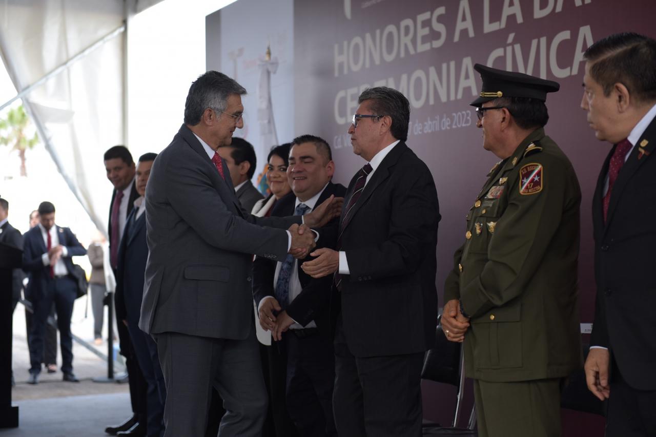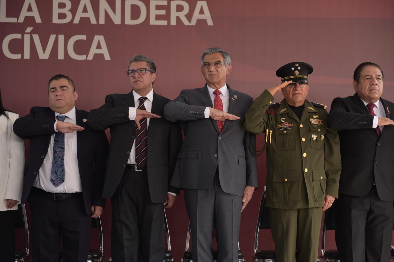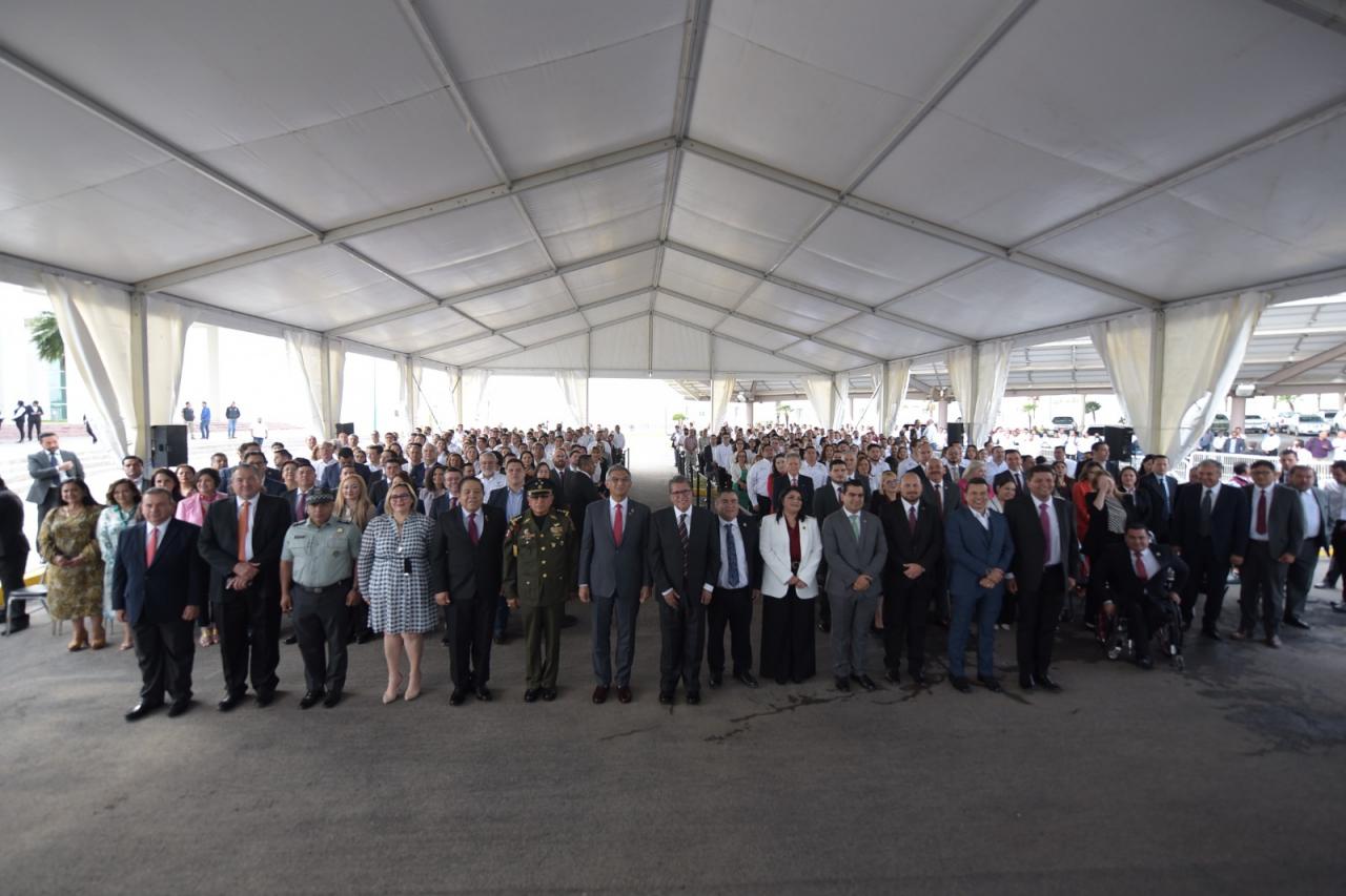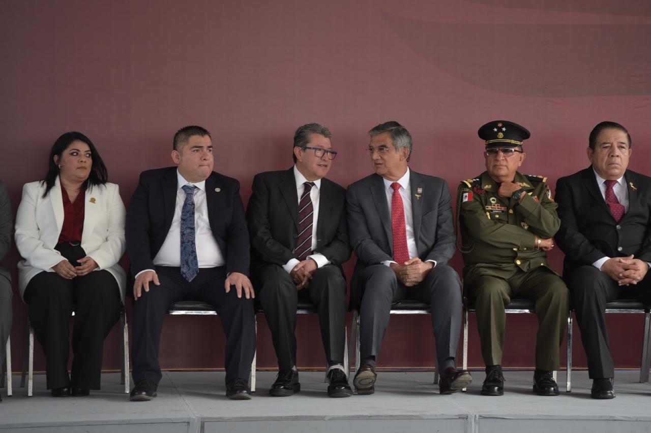 Asistieron a este acto cívico, el diputado Isidro Vargas Fernández, presidente de la Mesa Directiva del Congreso del Estado; David Cerda Zúñiga, presidente del Supremo Tribunal de Justicia; el comandante de la 48a. Zona Militar, General Elpidio Canales Rosas; y el representante de la Guardia Nacional, Fernando Meneses Martínez, así como la directora general del Centro de Capacitación y Formación del Senado, Cynthia Murrieta Moreno y el alcalde Eduardo Gattás Baéz, entre otros funcionarios y secretarios del gobinete estatal.