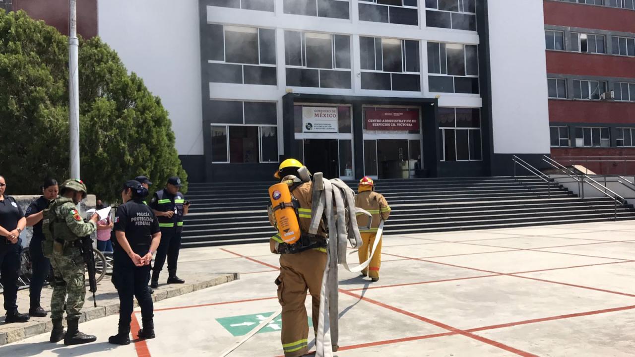 Llevar a cabo la evacuación del edificio, como parte del ejercicio se simuló que una persona resultó lesionada la cual fue trasladada por paramédicos al Seguro Social.