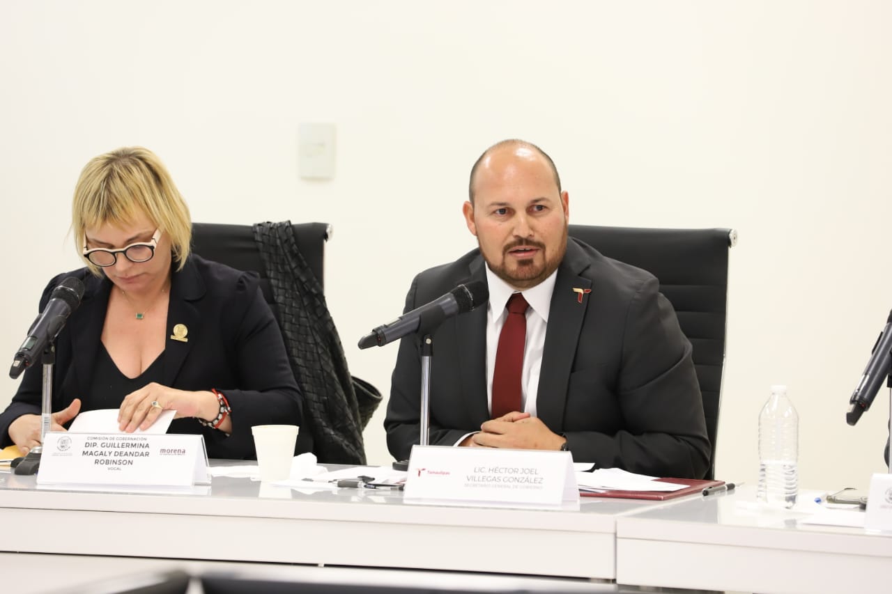 Ciudad Victoria, Tamaulipas.- El secretario general de Gobierno, Héctor Joel Villegas González, afirmó que el Gobierno de la Transformación que encabeza Américo Villarreal Anaya, en lugar de inmiscuirse en los asuntos que solo le competen a las y los diputados, está al servicio del pueblo, “respeta y hace respetar la ley, no da línea, no impone, no corrompe, no amenaza y no persigue a nadie".
