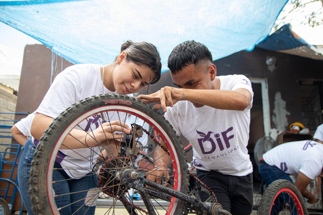 Un total de 15 integrantes de este grupo visitaron a David Alberto Molina Carrillo, vecino de esa comunidad que se dedica a la reparación de bicicletas, para colaborar con él en la adecuación de varias de ellas, que se entregarán a 30 menores en situación vulnerable, como parte de las actividades del “Día del Niño y de la Niña”.