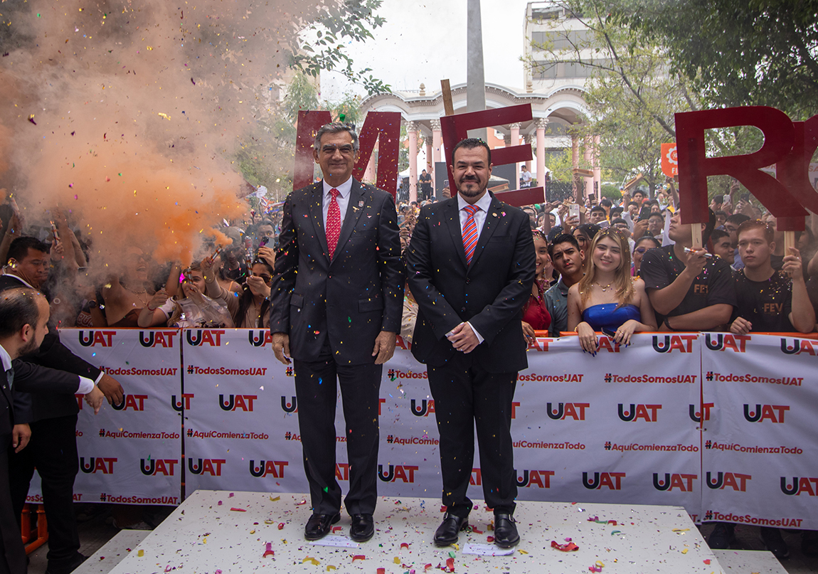 “Sé que esto es posible. Tenemos grandes egresados de la Universidad en la historia de nuestro estado”, dijo el mandatario, y celebró que en la administración estatal que él encabeza se encuentren muchos egresados: “Así es que el Gobierno de Tamaulipas, en esta ocasión, está formado por universitarios de la UAT”.