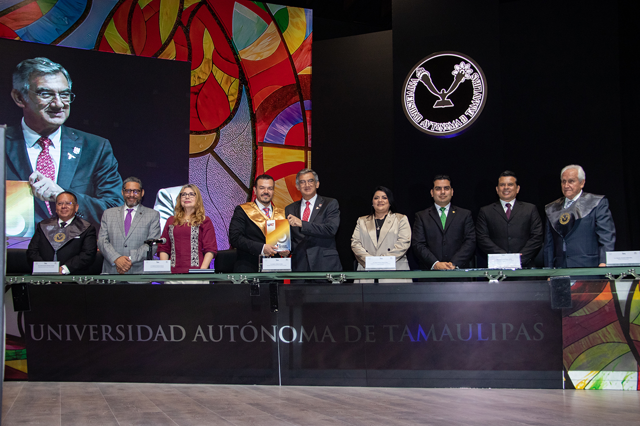 “La Universidad está llamada a forjar de manera disruptiva un nuevo horizonte promisorio y esperanzador para los jóvenes tamaulipecos; nuestra Universidad se compone de sentimientos, valores, ideas y filosofía institucional, con vocación de servicio y compromiso”, expresó.