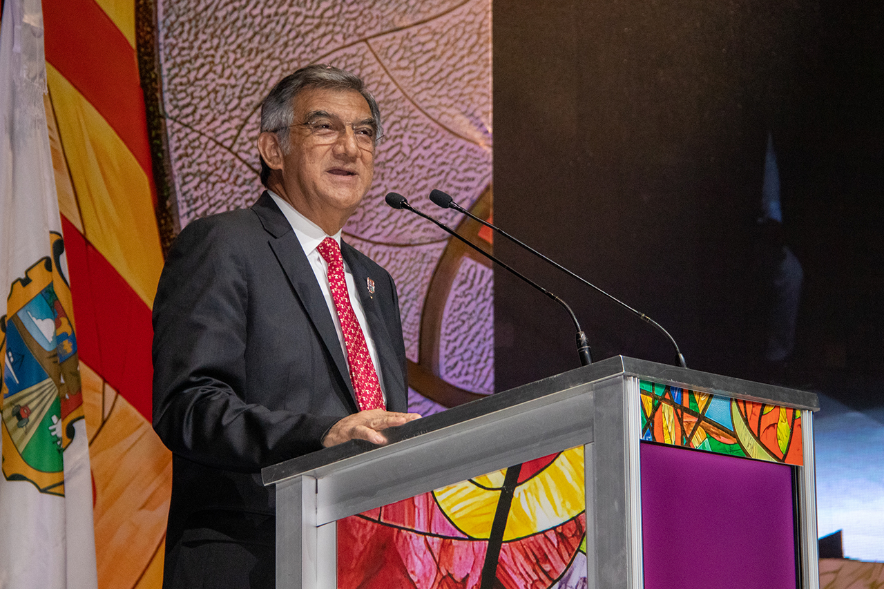 Reconoció el compromiso de la Universidad de formar profesionistas en el seno de una educación con democracia participativa y una sociedad colaborativa, mediante un modelo de pensamiento humanista centrado en el respeto a los derechos humanos y el desarrollo de bienestar social. “Sé que esta gran universidad va a formar cada vez más hombres y mujeres de bien”, agregó.