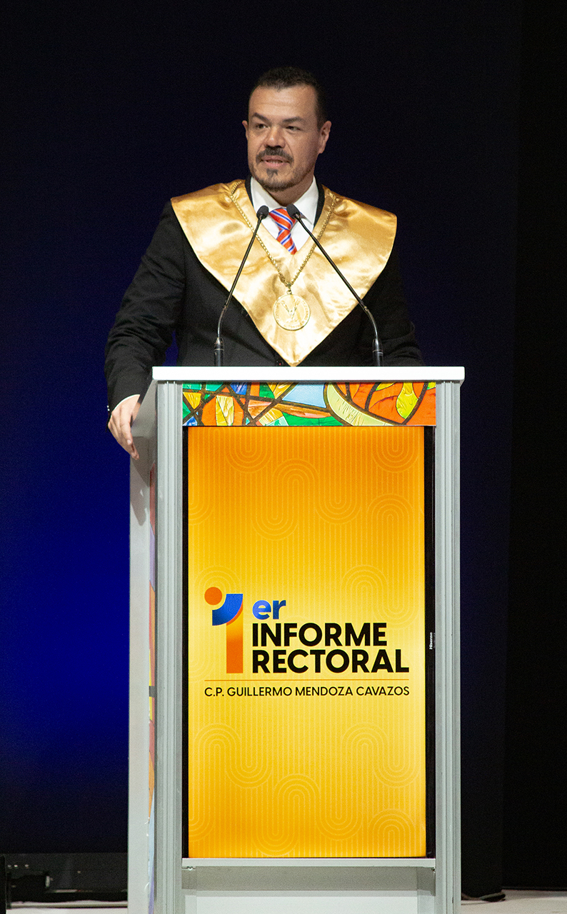 Al presentar su Primer Informe Rectoral ante la Asamblea Universitaria, el C. P. Guillermo Mendoza Cavazos expuso las acciones que se han desarrollado en las diferentes escuelas, facultades, unidades académicas y en las diferentes áreas que conforman esta casa de estudios, así como de la gestión institucional.