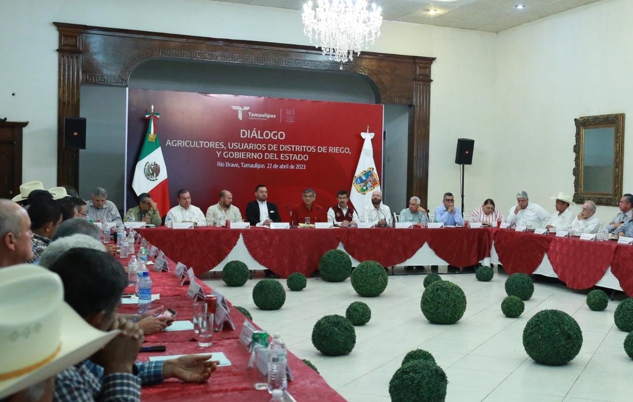 Río Bravo, Tamaulipas.- En un diálogo directo con agricultores y usuarios de los distritos de riego del norte de Tamaulipas, el gobernador Américo Villarreal Anaya aseguró que es tiempo de elaborar una estrategia con visión a mediano y largo plazo, que de rumbo y dirección para una solución gradual y acabar con la incertidumbre diaria que aqueja al sector agrícola.