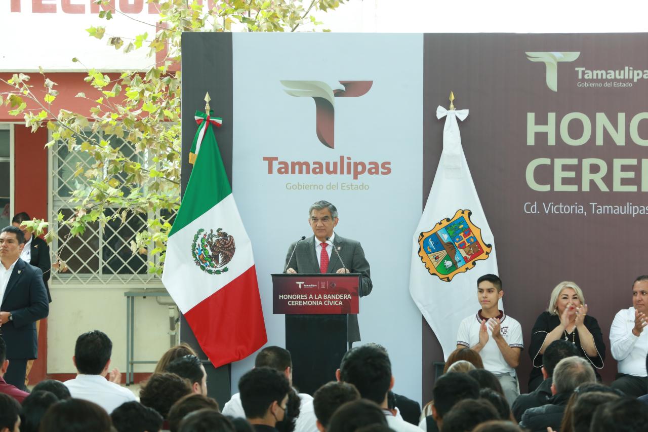 "Me alegra decirles que con esta iniciativa serán beneficiados ocho CBTIS y dos CETIS y es un gusto aún mayor compartirles que en este plantel estaremos aplicando más de 4 millones de pesos para la construcción de dos aulas didácticas y otras obras", expresó al encabezar la ceremonia cívica de honores, celebrada este lunes en el CBTIS 271, ubicado en el Parque Científico y Tecnológico de Tamaulipas.