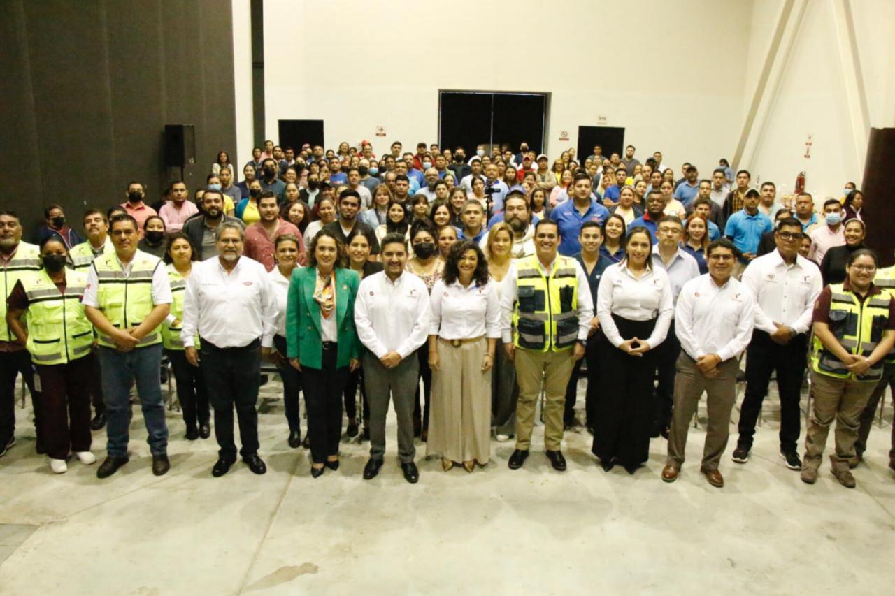 La secretaria del Trabajo agradeció la participación de la coordinación estatal de Protección Civil a cargo de Luis Gerardo González de la Fuente, en este evento representado por Juan Antonio López Hernández, director de enlaces con dependencias, organismos e instituciones, capacitación e inspecciones.