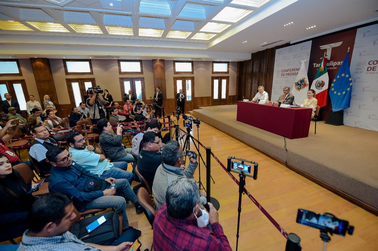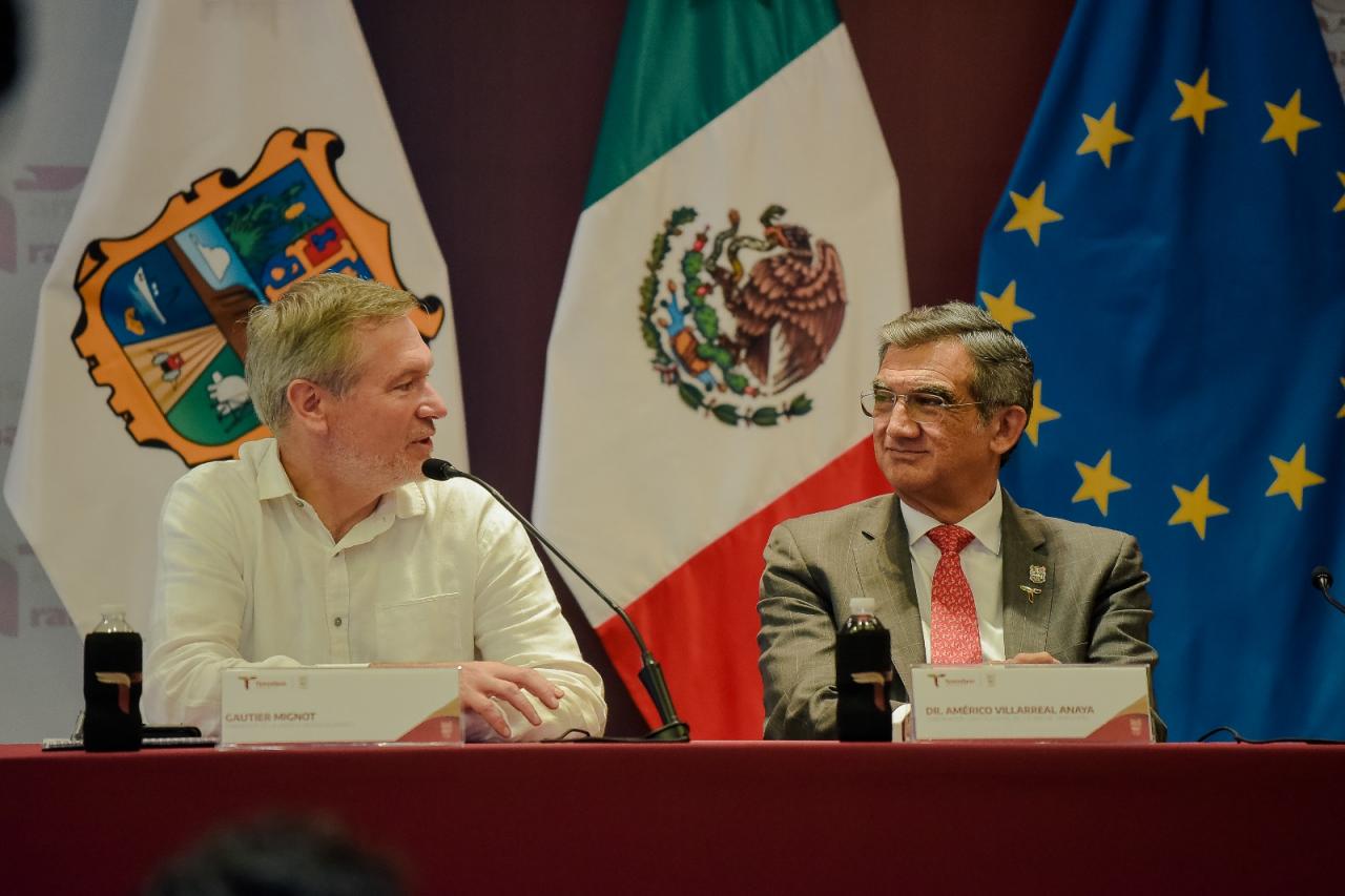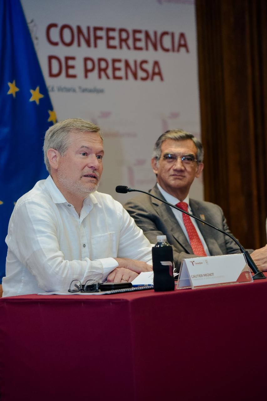 En conferencia de prensa en el Salón Independencia de Palacio de Gobierno y luego de una reunión de trabajo con el gobernador Américo Villarreal e integrantes del gabinete estatal, Gautier Mignot anunció que en el mes de junio llegarán a Tamaulipas embajadores de 19 países integrantes de la Unión Europea, para fortalecer relaciones comerciales y conocer el gran potencial y las magníficas oportunidades que ofrece Tamaulipas, por sus condiciones naturales y geográficas.