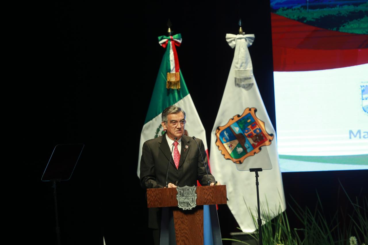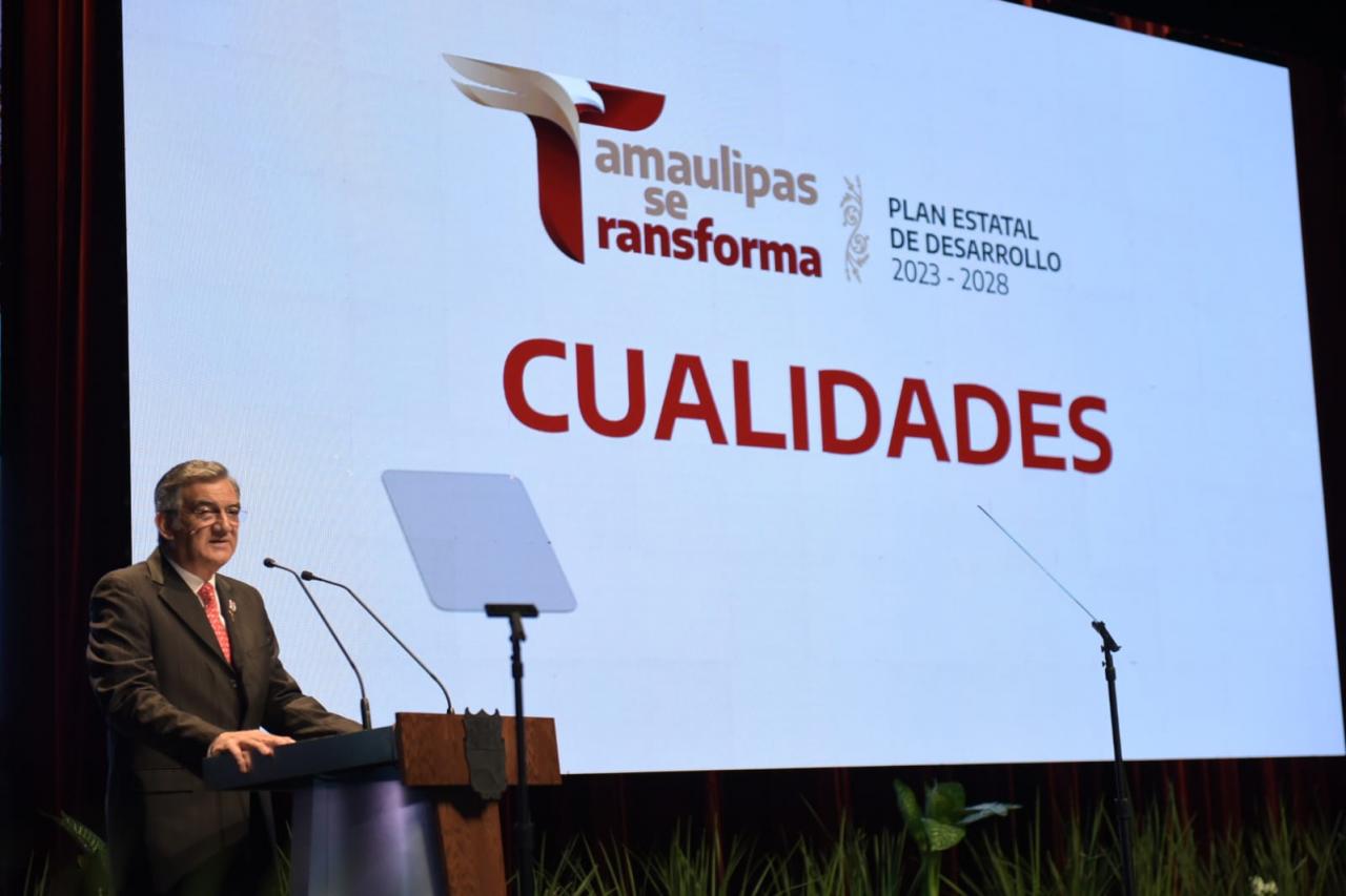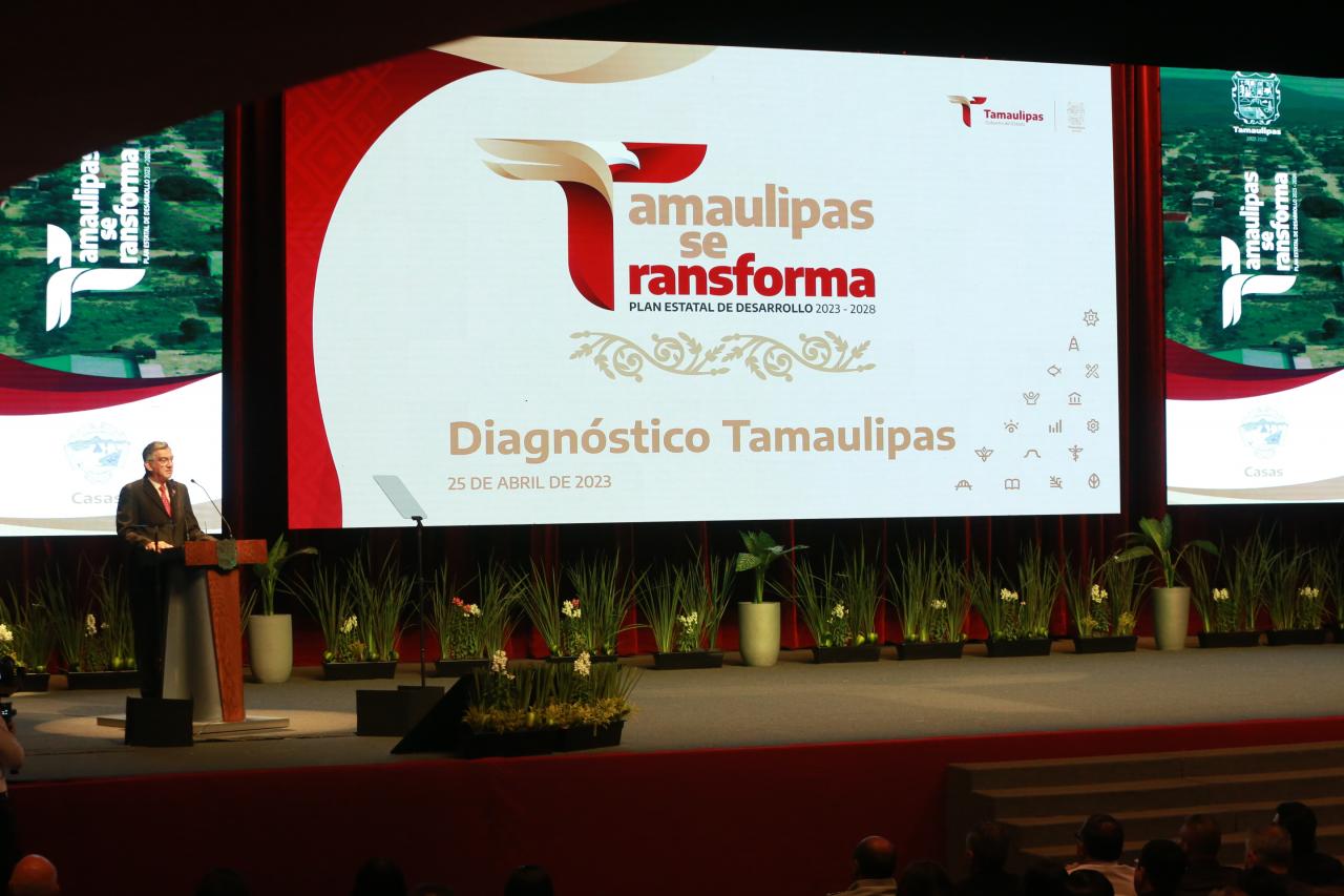 En un evento realizado en el teatro Amalia G. de Castillo Ledón, acompañado de la presidenta del Sistema DIF Tamaulipas, María de Villarreal, así como del embajador de la Unión Europea en México, Gautier Mignot y representantes de la sociedad y tras presentar un diagnóstico preciso de la entidad, el gobernador expuso detalladamente el plan rector de su gobierno, el cual fue entregado en tiempo y forma al Congreso del Estado, el pasado 31 de marzo, en cumplimiento a lo establecido en el Artículo 6 de la Ley Estatal de Planeación.