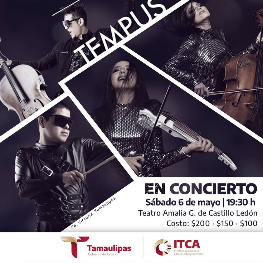 Ciudad Victoria, Tamaulipas.- El Instituto Tamaulipeco para la Cultura y las Artes invita a la ciudadanía al concierto de “Tempus Quartet”, que será el próximo sábado 6 de mayo a las 17:30 horas en el Teatro "Amalia G. de Castillo Ledón" del Centro Cultural Tamaulipas.