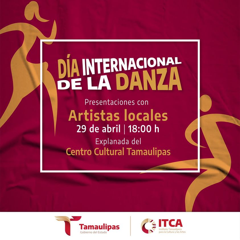 Ciudad Victoria, Tamaulipas.- El Instituto Tamaulipeco para la Cultura y las Artes llevará a cabo el Festival del "Día Internacional de la Danza" y extiende la invitación a toda la comunidad para que asista el próximo sábado 29 de abril en punto de las 18:00 horas en la explanada del Centro Cultural Tamaulipas.