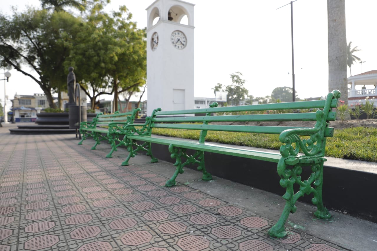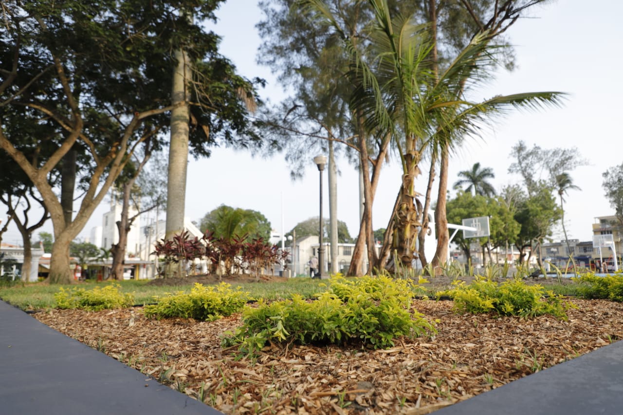 El mandatario explicó que los trabajos desarrollados en el sitio incluyen la instalación de luminarias, fuente, bancas, pintura, Jardines, juegos infantiles y rehabilitación integral de la legendaria plaza.