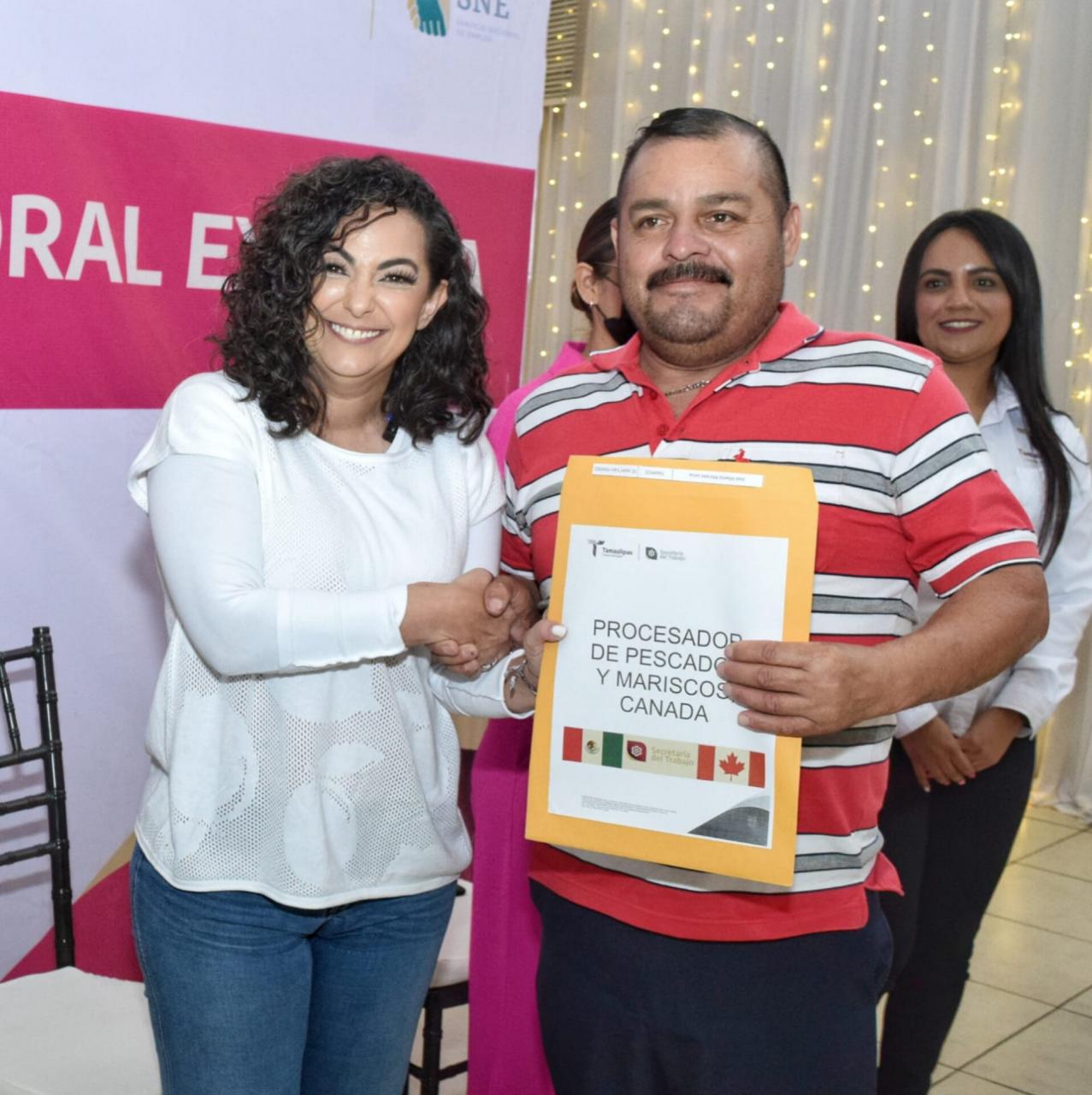 La Secretaría del Trabajo a través del Servicio Nacional del Empleo hizo entrega de la documentación correspondiente a 17 personas residentes de Tampico, que se dedican a la actividad pesquera y cuentan con la experiencia necesaria para laboral en Canadá, con un salario competitivo y con el respaldo del gobierno de Tamaulipas.