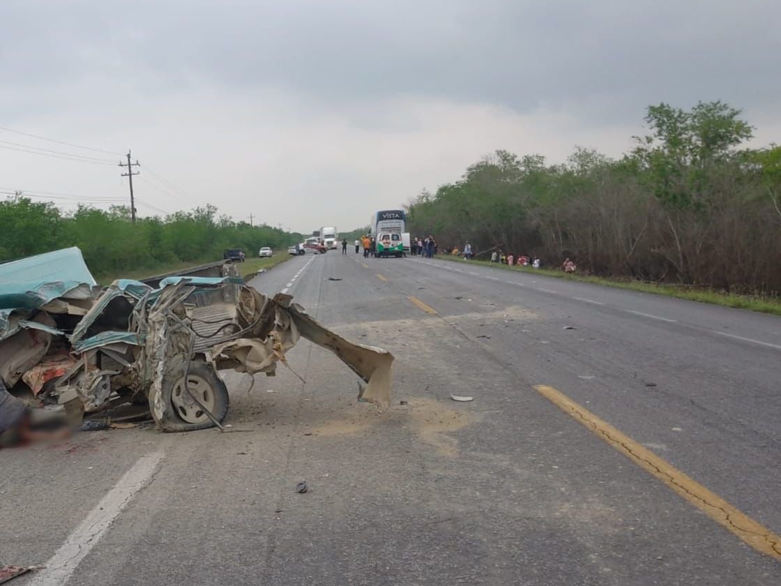 En el lugar, a un costado de la camioneta tipo pickup que quedó completamente destrozada tras el encontronazo con el autobús, fue encontrada una persona sin signos vitales.
