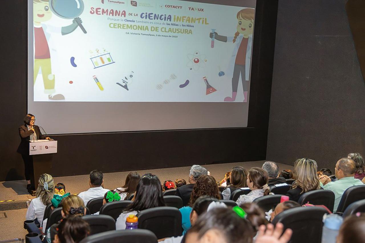 Ciudad Victoria, Tamaulipas.- Con gran éxito concluyó la Semana de la Ciencia Infantil en Tamaulipas, organizada por el gobierno que dirige Américo Villarreal Anaya, la Secretaría de Educación y el COTACYT, en el marco de las celebraciones del Día de la Niña y el Niño.