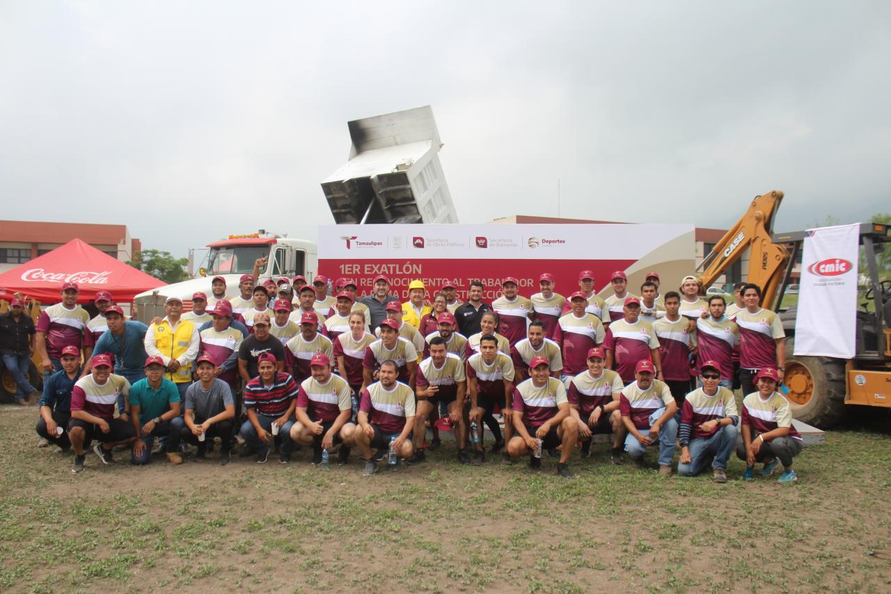 Ciudad Victoria. - Con el objetivo de reconocer el mérito a la labor del trabajador de la construcción mediante una convivencia deportiva, el Instituto del Deporte de Tamaulipas a través de la Dirección de Desarrollo del Deporte en coordinación con la Secretaría de Obras Públicas del Estado, realizaron en Ciudad Victoria, el 1er. Exatlón “Reconocimiento al trabajador de la Construcción”.