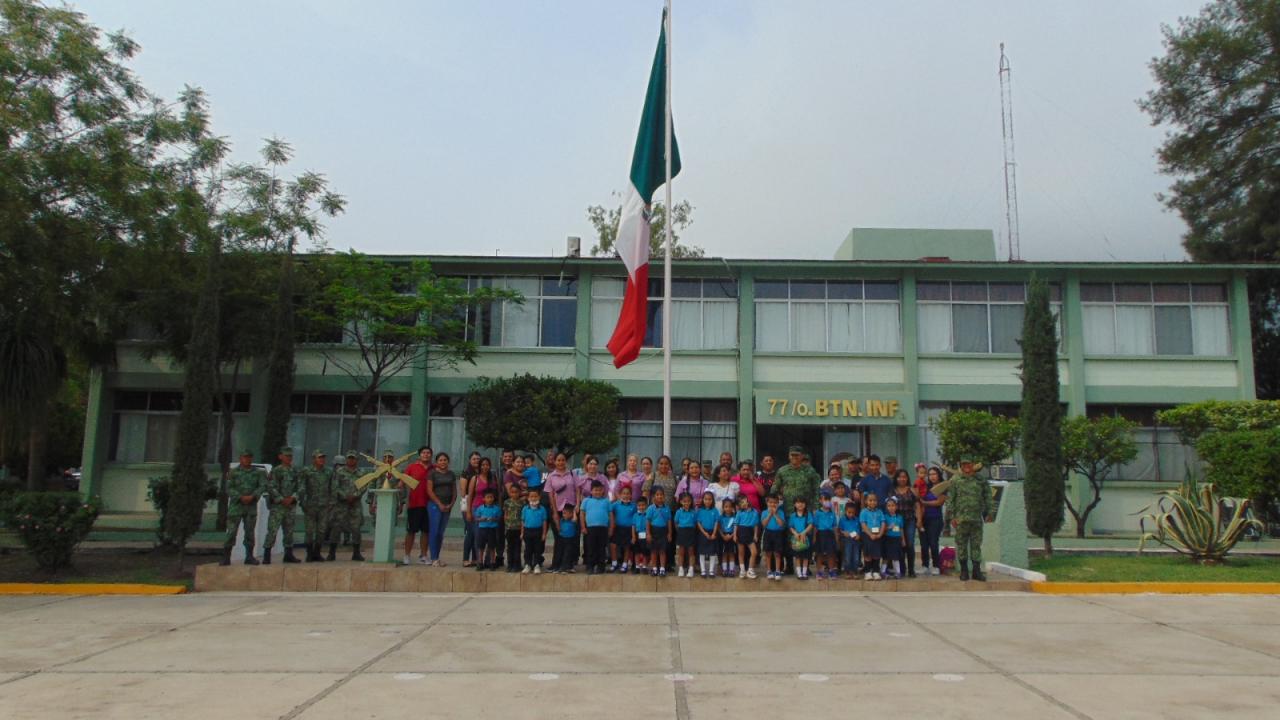 Esta mañana personal del 77/o. Batallón de Infantería, realizaron una visita guiada por las instalaciones del Batallón a los alumnos y maestros del jardín de niños “Emilia Sierra Bustamante”