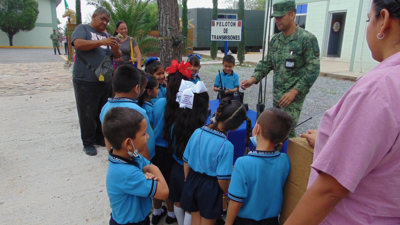 En este recorrido se les explicó las actividades del instituto armado, así mismo se rindieron honores a la Bandera y colocando módulos de Transmisiones, Sanidad y Transportes.