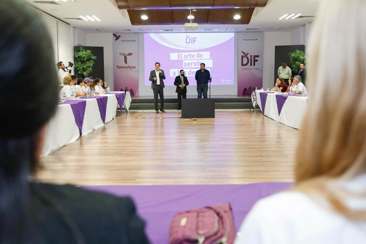El director general del DIF Tamaulipas, Geancarlo Bonetta Cavazos, dijo que para la presidenta estatal del DIF María de Villarreal, es muy importante ofrecerles el mayor número de herramientas para servir a las familias; y reconoció la participación mostrada por las y los asistentes; “gracias por su vocación y dedicación para seguir mejorando y no solamente para servir sino para llevarse a casa y que les pueda ayudar como personas, porque todos somos DIF, unidos para transformar Tamaulipas”.