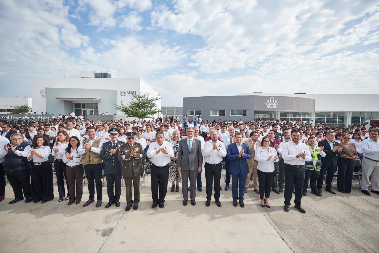 Ante maestros, instructores y alumnos de este centro de estudios policiales, el gobernador destacó que el reto de restablecer la paz y la seguridad es uno de los grandes compromisos del Gobierno de la Transformación.