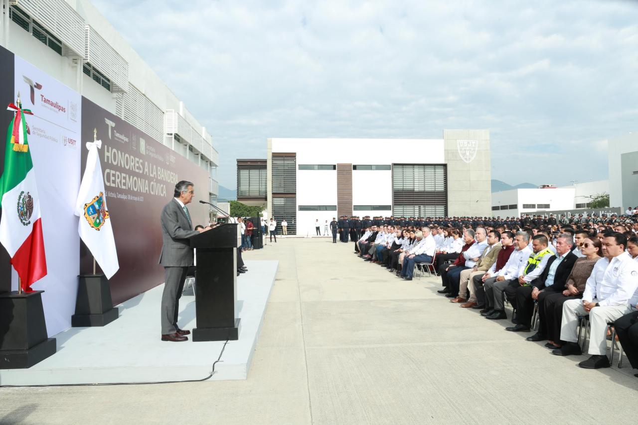 En su mensaje el mandatario estatal aseguró que Tamaulipas cuenta hoy con una Guardia Estatal, con el mismo perfil ético y de valores que la Guardia Nacional y se ha replanteado su capacitación y equipamiento, así como una mejora importante en su régimen disciplinario.