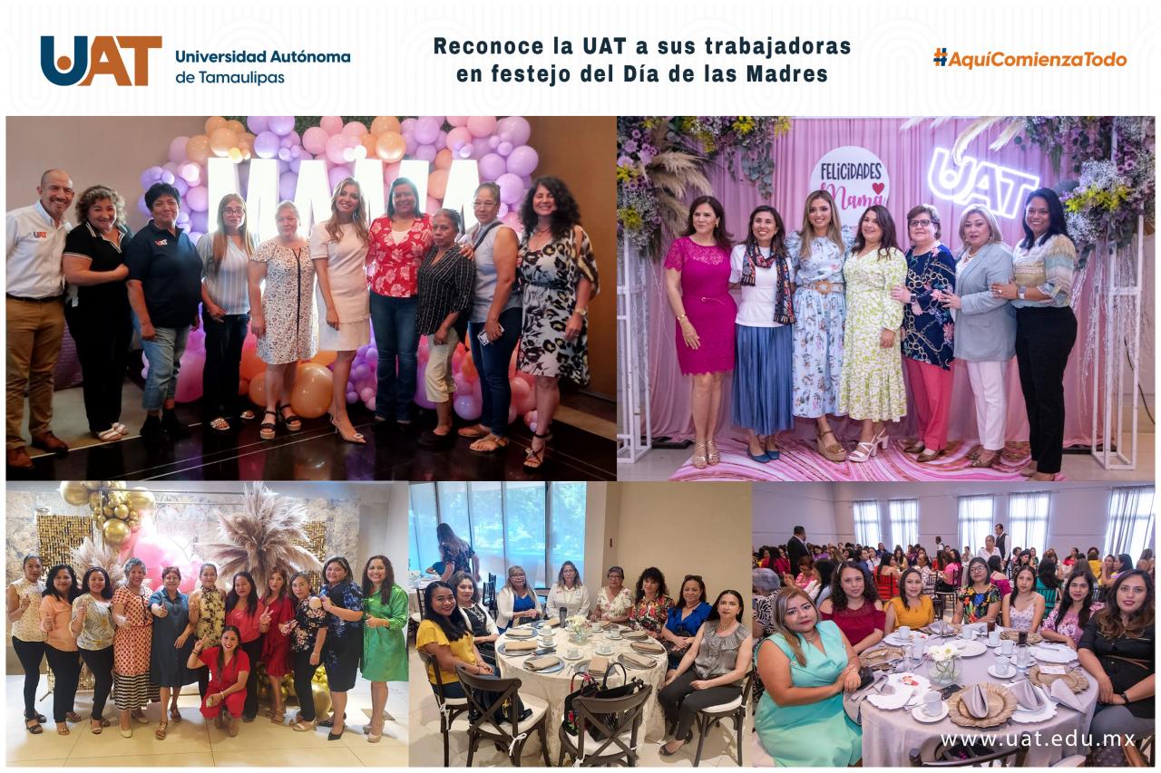 La Universidad Autónoma de Tamaulipas (UAT) ofreció su tradicional festejo por el Día de las Madres a las trabajadoras sindicalizadas adscritas a los planteles del Campus Victoria, evento en el que se les reconoce su trabajo y dedicación, el cual ha coadyuvado al engrandecimiento de esta casa de estudios.