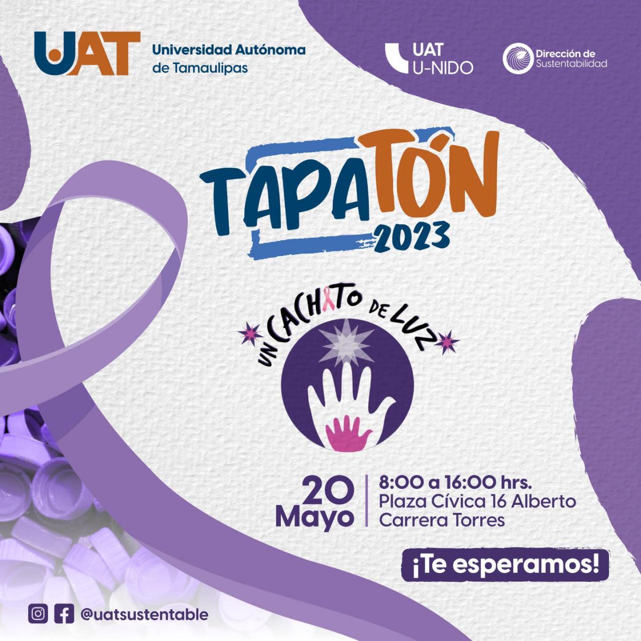 Como parte de las acciones que la Universidad Autónoma de Tamaulipas (UAT) implementa para crear conciencia sobre el adecuado manejo de residuos y su aprovechamiento en apoyo a personas que más lo necesiten, invita a la comunidad universitaria y sociedad en general a participar en el Tapatón 2023, que organiza la Asociación “Un cachito de Luz”.