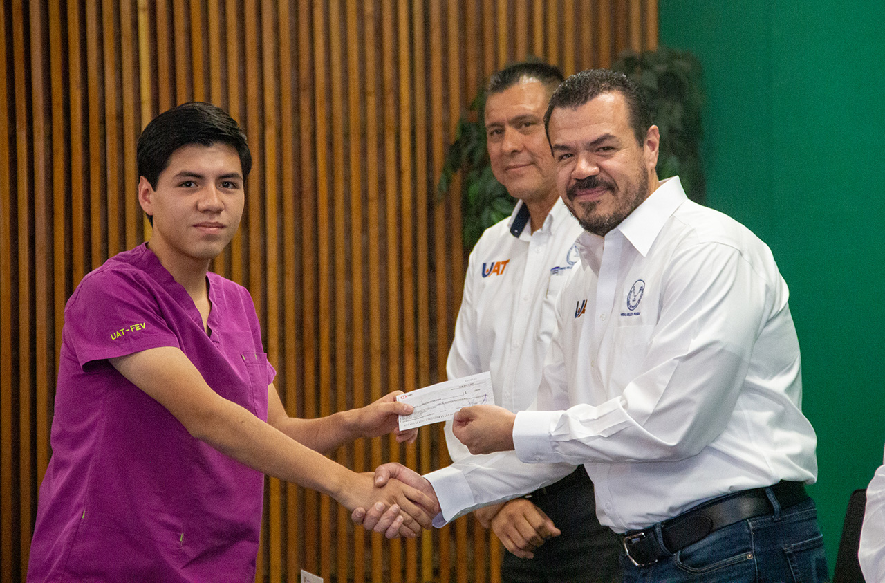 A la ceremonia acudieron personalmente estudiantes del Campus Victoria para recibir sus estímulos económicos. En representación de los jóvenes de las secciones del SUTAUAT en la zona norte del estado recibió el Mtro. Homero de Jesús González Rojo; por la sección Mante, el Mtro. José Javier Salinas Castillo; y por la sección sur, el Mtro. Leobardo Vázquez Santiago.