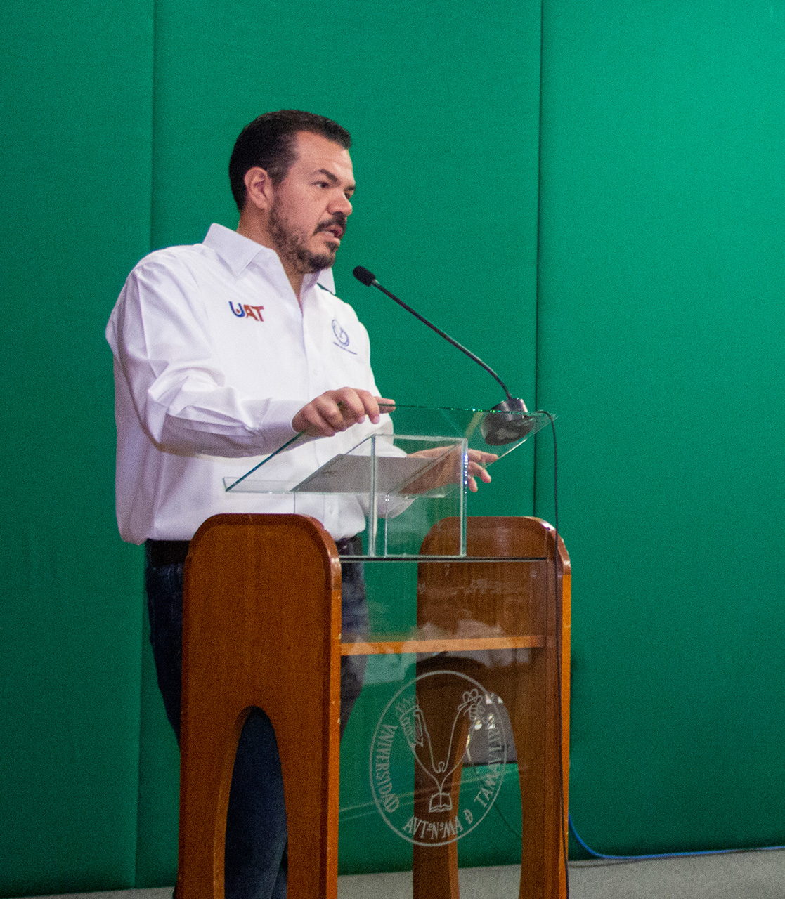 En el evento realizado en el Centro de Excelencia del Campus Victoria, el rector Guillermo Mendoza Cavazos estuvo acompañado del Lic. Luis Gerardo Galván Velazco, secretario general estatal del Sindicato Único de Trabajadores Académicos (SUTAUAT), así como de la secretaria tesorera de ese gremio, la Dra. Griselda Gaona García.