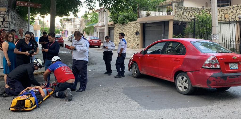 Al llegar a la esquina con la calle Rosales la conductora del Aveo ignoró un disco metálico de alto y arrolló a la pareja que iba en la motoneta.