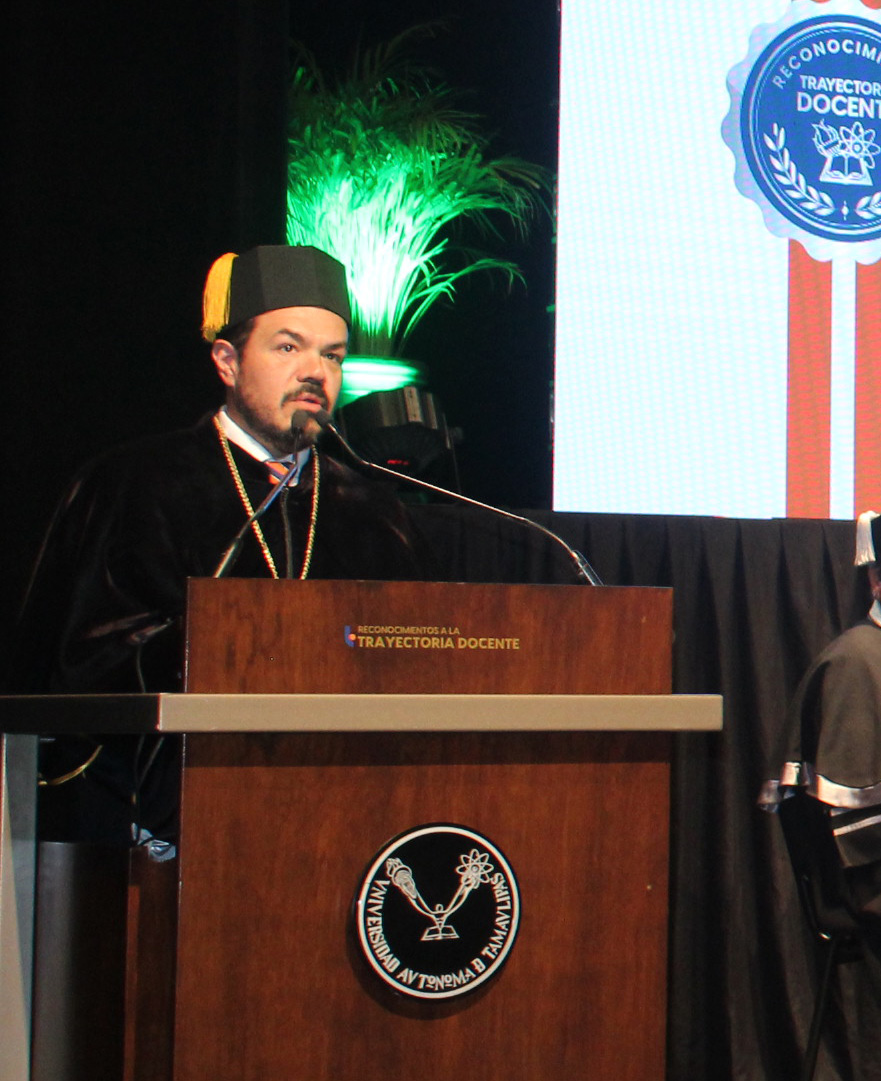 En su mensaje, el rector Guillermo Mendoza dijo que para la Universidad es un honor reconocer la trayectoria y el compromiso de sus docentes porque son parte fundamental del crecimiento educativo de la UAT.