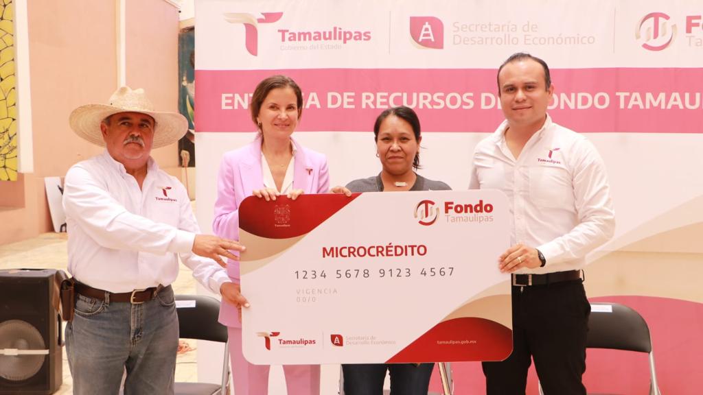 Ninfa Cantú Deándar estuvo acompañada del presidente municipal de Tula, Antonio Leija Villarreal y del director de Microcrédito del Fondo Tamaulipas, Valentín De la Cruz.