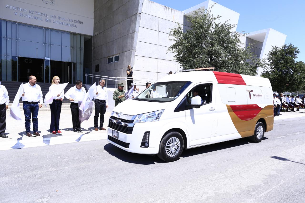 Ciudad Victoria, Tamaulipas.- Para fortalecer la Guardia Estatal de Género, el gobernador de Tamaulipas Américo Villarreal Anaya, entregó ocho patrullas a la Secretaría de Seguridad Pública, unidades especializadas en atención a víctimas, que permitirán fortalecer las acciones contra el delito de violencia familiar y reiteró el compromiso del Gobierno de la Transformación para proteger a las niñas, niños, adolescentes y mujeres.
