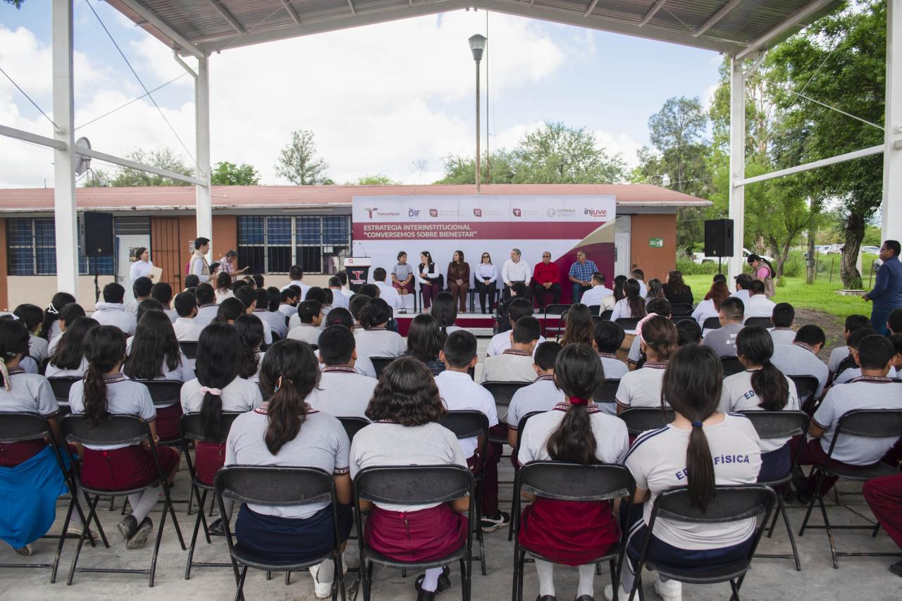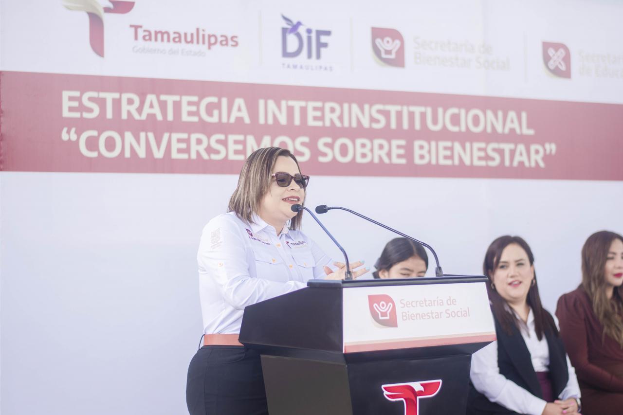 Ciudad Victoria, Tamaulipas.-Con la presencia de autoridades de la Secretaría de Bienestar Social, DIF Tamaulipas, Secretaría de Educación, Secretaría de Salud, INJUVE y el SIPINNA, se realizó la inauguración de la Estrategia Interinstitucional Conversemos sobre Bienestar.