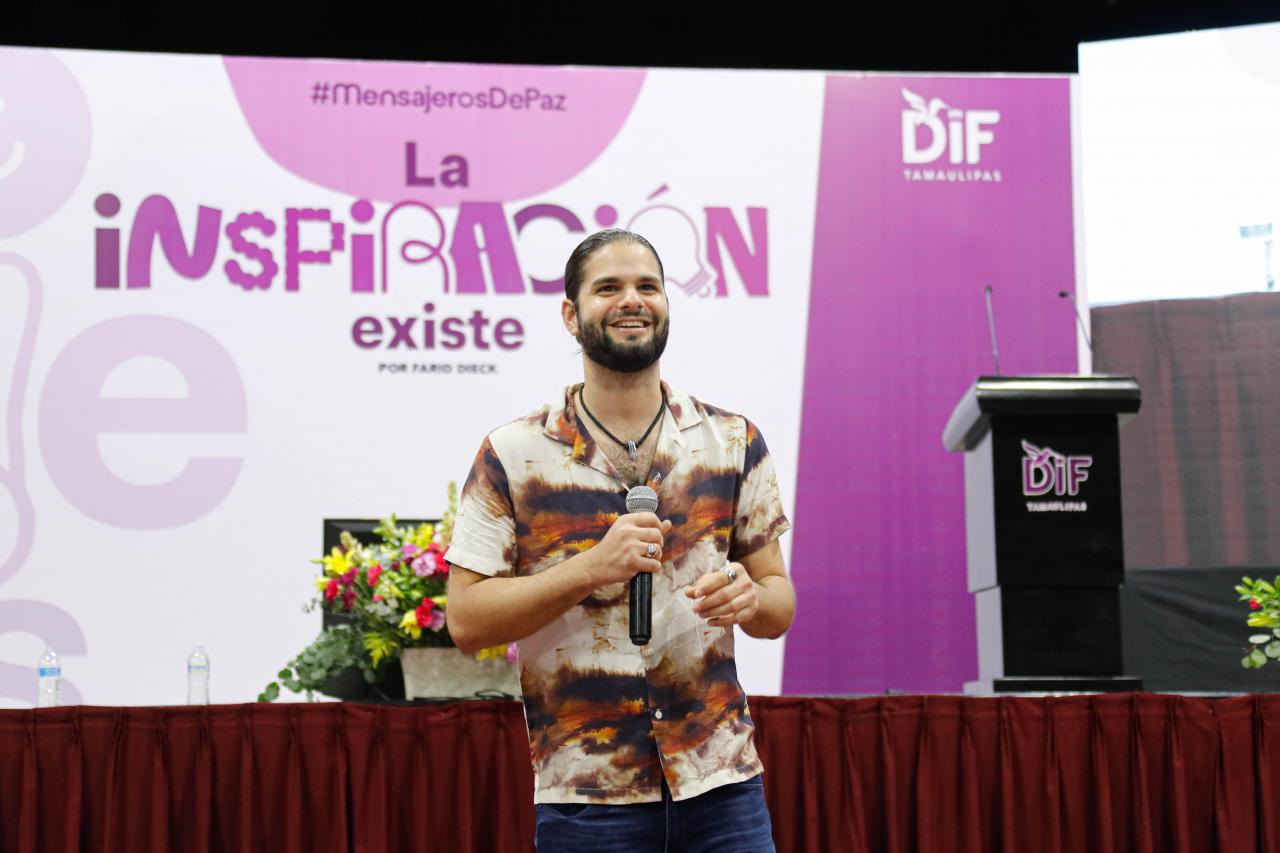 Matamoros, Tamaulipas.- Para fomentar el bienestar y la sana convivencia, el Sistema DIF Tamaulipas que preside la doctora María Santiago de Villarreal, presentó en la ciudad de Matamoros la ponencia “La inspiración existe” por parte Farid Dieck, reconocido conferencista originario de Monterrey, Nuevo León.