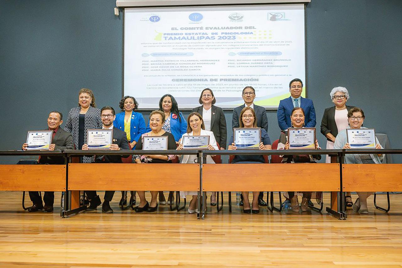 En el marco del Día Nacional de la Psicología, el Colegio de Psicólogos de Tamaulipas hizo entrega del Premio Estatal 2023, a siete especialistas en la materia, que se distinguieron en su desarrollo profesional y en la investigación y docencia.