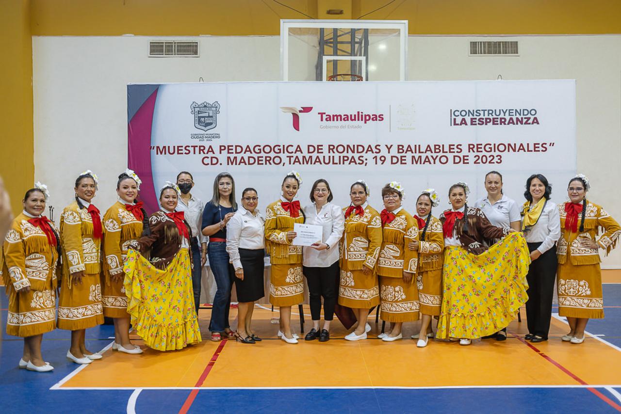 La titular de la SET, encabezó la Muestra Pedagógica de Bailes Regionales y Rondas Infantiles donde participaron decenas de niñas y niños de planteles públicos y privados de educación preescolar de la zona escolar 101 de Ciudad Madero.