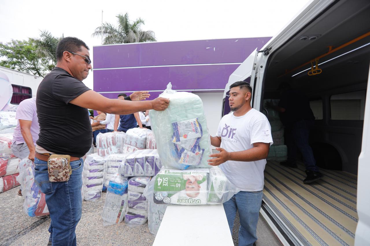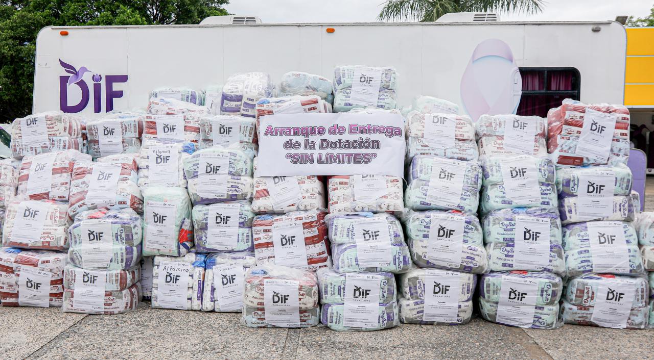 Ciudad Victoria, Tamaulipas.- Con la entrega personalizada en cada hogar de las mil 800 personas con discapacidad en situación de vulnerabilidad, registradas dentro del programa “Lazos de Esperanza”, el Sistema DIF Tamaulipas que preside la doctora María Santiago de Villarreal, llevó a cabo la primera de tres entregas de la dotación denominada “Sin Límites”, que consiste en pañales especiales, toallas húmedas y suplementos alimenticios para cada uno de los beneficiados.