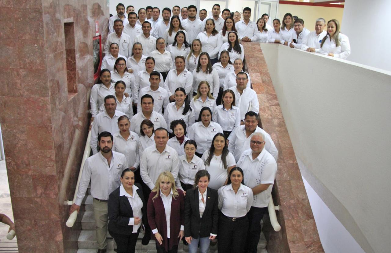 En una emotiva ceremonia, Cantú Deándar transmitió al personal, la felicitación y el reconocimiento de la administración del gobernador Américo Villarreal por su trabajo para apoyar el talento y la capacidad de los emprendedores y de las Mipymes con financiamiento, capacitación y asistencia técnica.