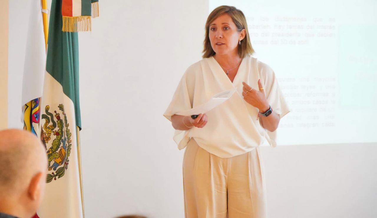 La legisladora federal porteña fue presentada ante los agremiados por el Presidente del Centro Empresarial, Gonzalo Treviño Rodríguez y su mesa directiva, pues sin más preámbulo dió a conocer los antecedentes del paquete de casi 20 iniciativas avaladas por los diputados y senadores del partido en el poder, que hoy tiene suspendido y en análisis la Suprema Corte de Justicia de la Nación.